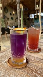 Menu makanan dan minuman disini juga cukup unik serta bergaya ala-ala pantai. Banyak sekali yang recommended, dan salah satunya adalah si chicken skewer yang disajikan dengan mashed potatoes serta pesto sauce. Minumannya juga banyak yang penuh warna, cocok banget dengan suasana yang ditawarkan.